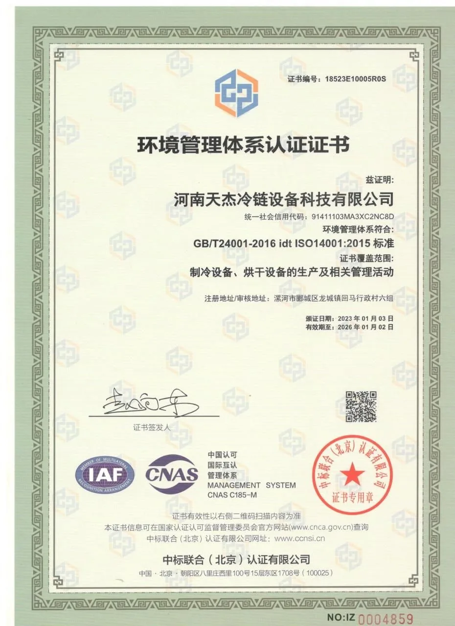 Shanghai Heleng Refrigeration and Electromechanical Equipment Co., Ltd. is affiliated to Luohe Tian Shun Cold Chain Group. Since its establishment in 2022, the company has been dedicated to the research and manufacturing of advanced refrigeration technology solutions. The company integrates product research and development, lean production, sales promotion, engineering installation and after-sales maintenance, and covers a full range of product matrices including compressors, cold storage units, multi-temperature zone cold storage panels, efficient condensers, variable frequency refrigeration units, air source heat pump dryers, and intelligent central air conditioning systems, which are widely applied in high-demand fields such as food processing, environmental simulation experiments, supermarket retail, modern agriculture preservation, and special industrial environments.